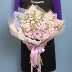маттиола нежно розовая – 11 шт.Упаковка дизайнерская – 2 шт.Лента атласная – 2 шт.