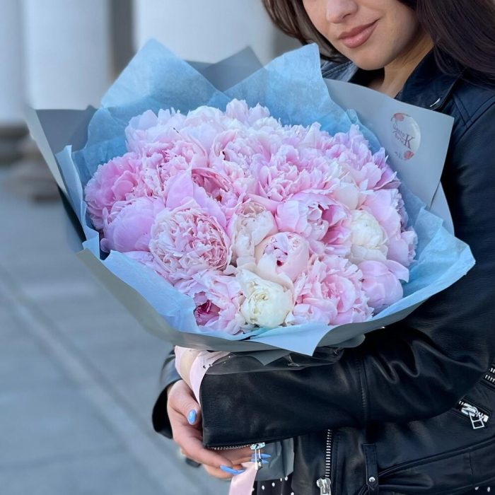 Лента атласная – 2 шт.Пион Сара Бернар – 25 шт.Упаковка дизайнерская – 2 шт.коробка транспортировочная – 1 шт.подкормка для срезанных цветов – 1 шт.крафт конверт – 1 шт.инструкция по уходу за цветами – 1 шт.аквапак с водой – 1 шт.