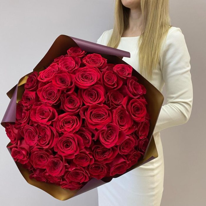51 роза Эквадор 50 см в упаковке