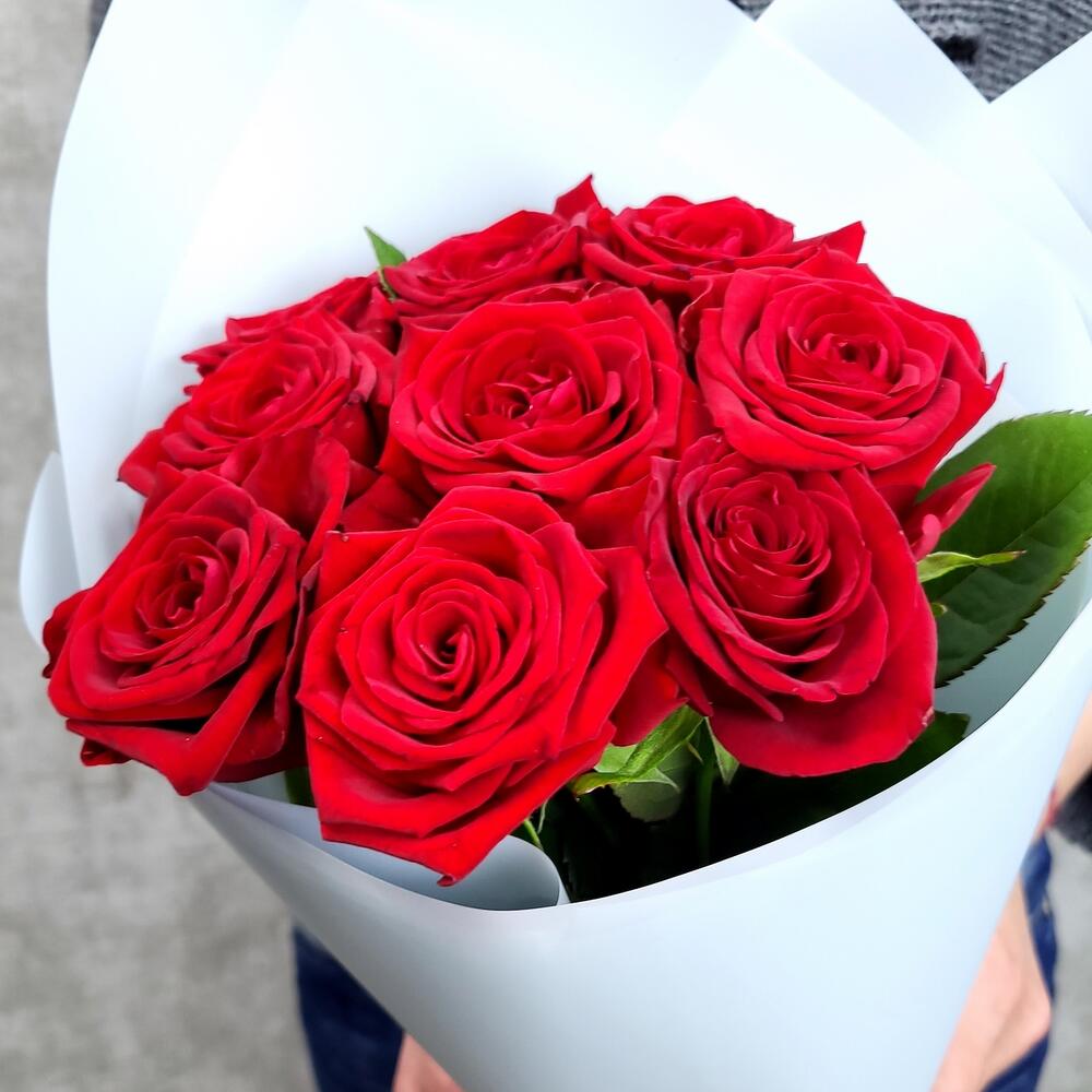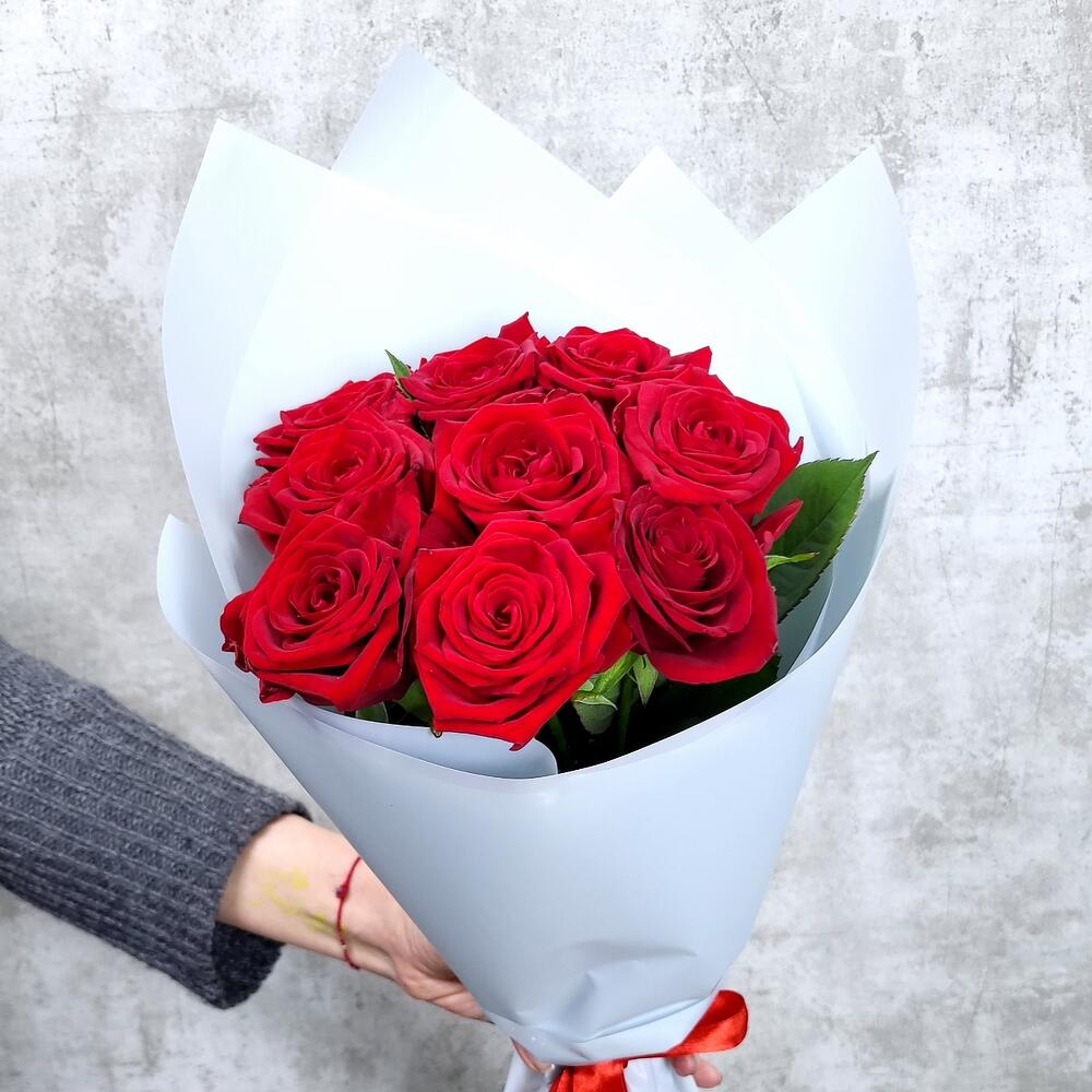9 красных роз 60-70 см