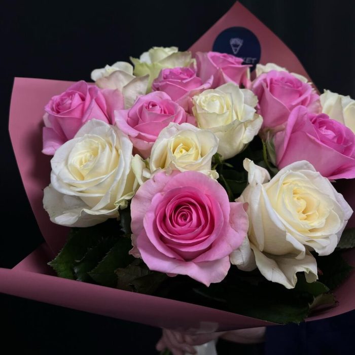Букет из 15 белых и розовых роз