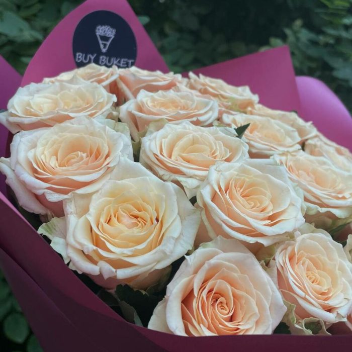 Лента атласная – 1 шт.Упаковка дизайнерская – 2 шт.Кремовая роза – 21 шт.