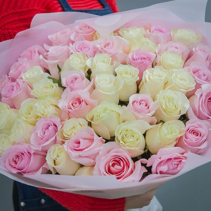 Букет из 51 белой и розовой розы