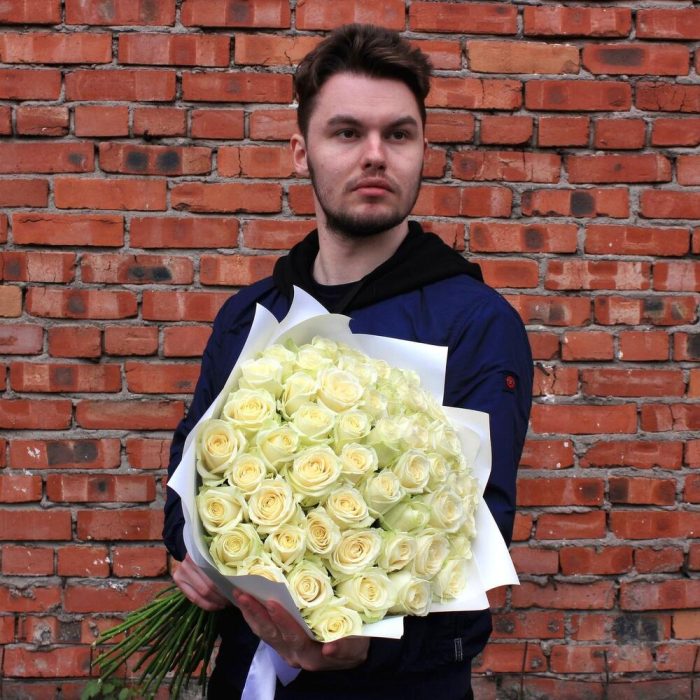 Букет из 51 белой розы (Кения) 30 см