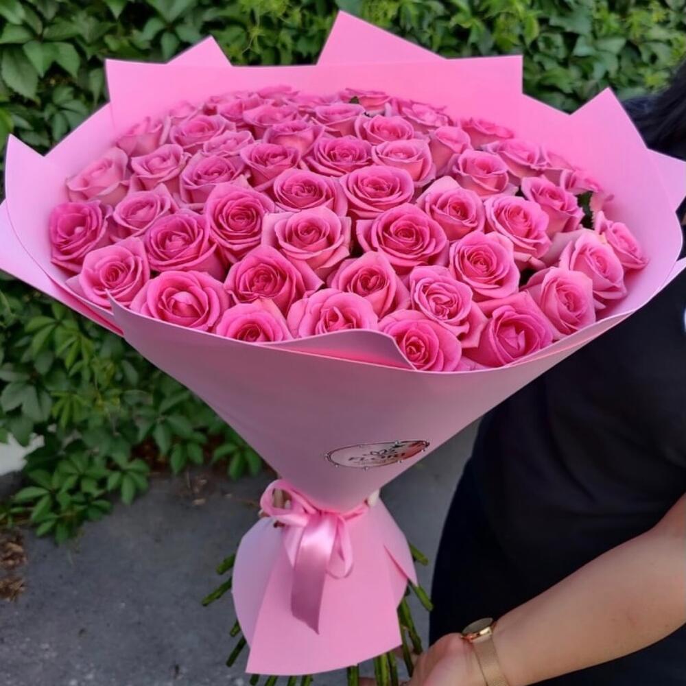 Букет из 51 Розовой Розы 70см Эквадор