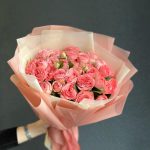 Атласная лента – 1 шт.Кустовая пионовидная роза – 9 шт.декоративная упаковка – 1 шт.