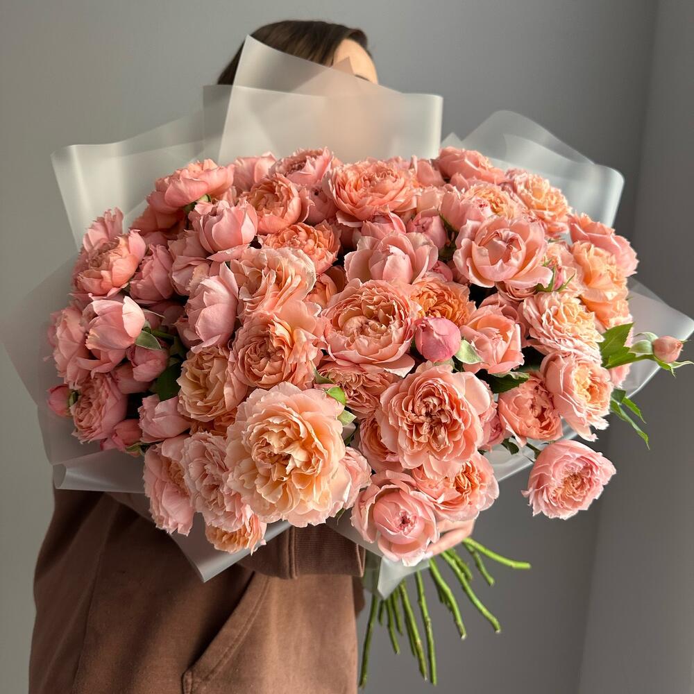 пионовидная кустовая роза джульетта – 21 шт.Упаковка дизайнерская – 5 шт.