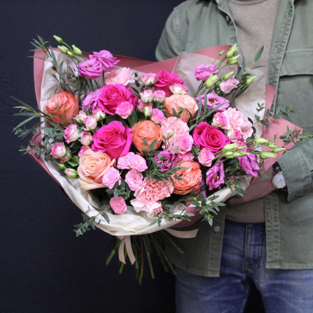 Категорий: Гвоздики, Кустовые розы, Лизиантусы, Пионовидные розы, Розы