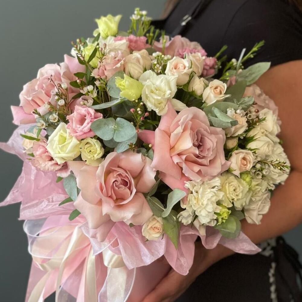 Гвоздики, Кустовые розы, Лизиантусы, Пионовидные розы, Розы