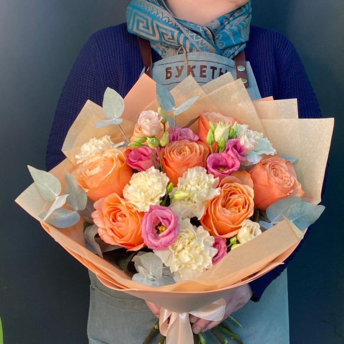 Гвоздики, Кустовые розы, Лизиантусы, Пионовидные розы, Розы