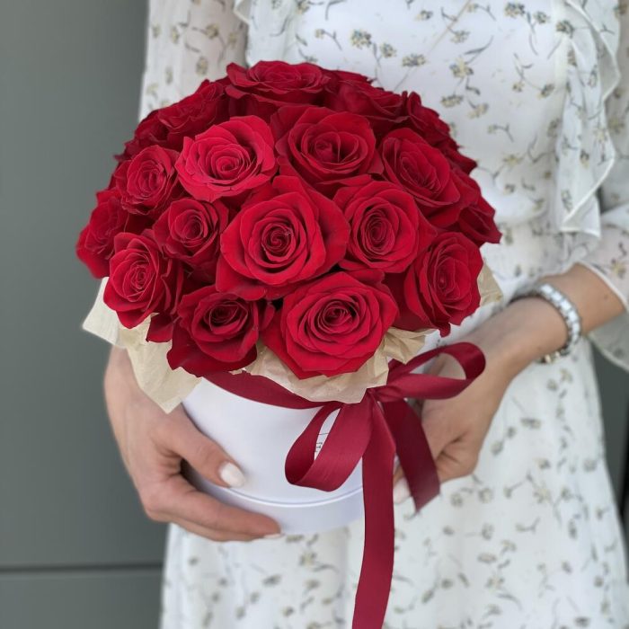 Коробка шляпная из 25 красных роз