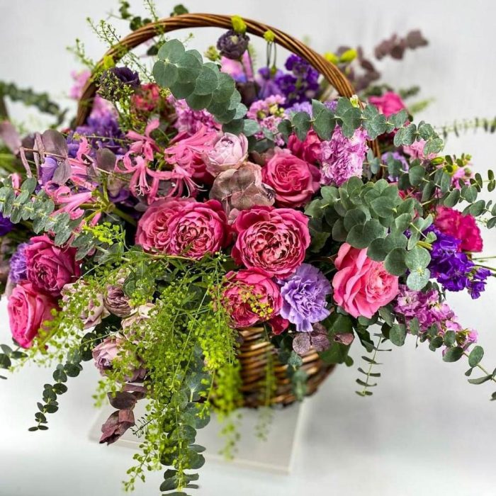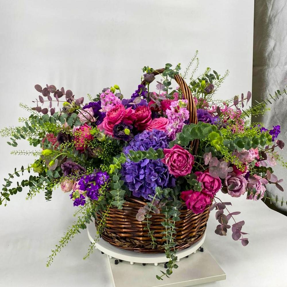 Корзина с цветами “Пурпурное облако”