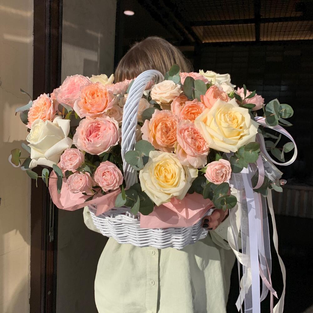 Корзина с пионовидными розами