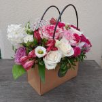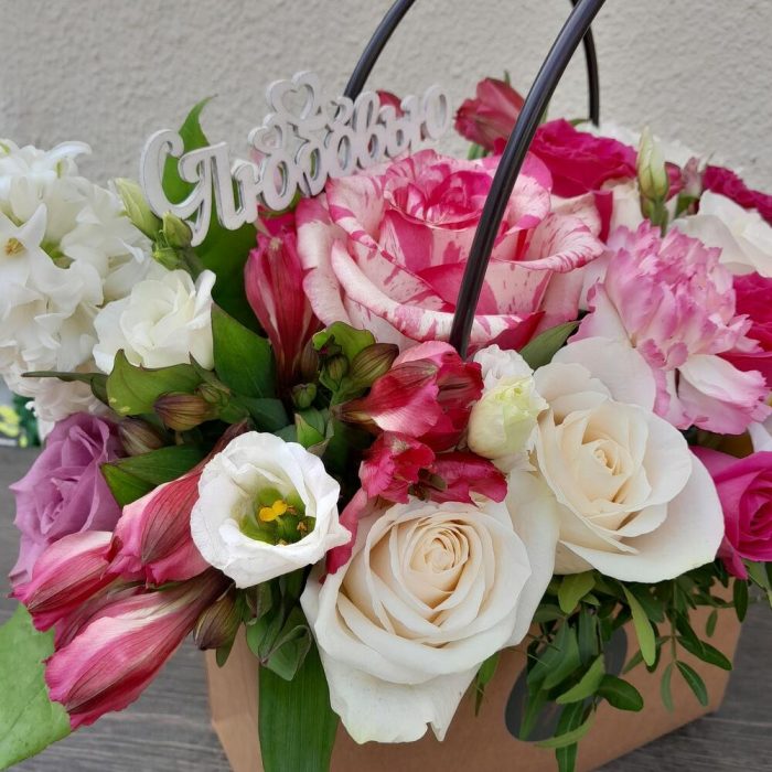 Гвоздики, Лизиантусы, Розы, Тюльпаны