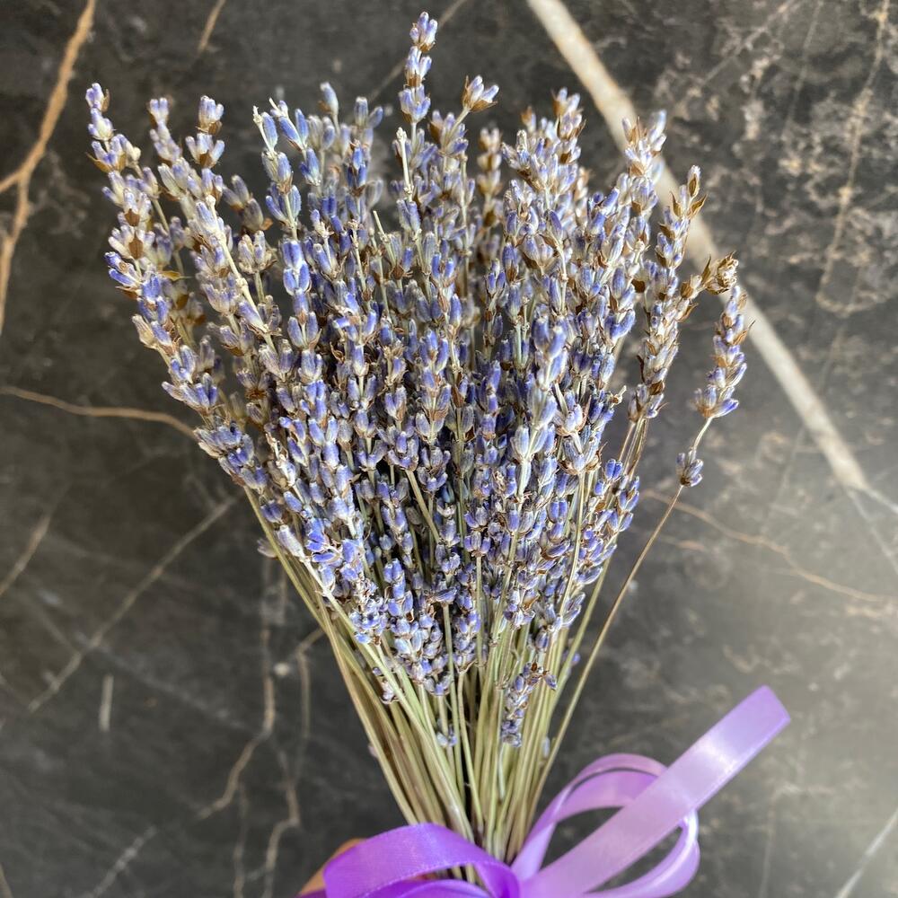 «Лавандовое созвездие» Букет из розы, гвоздики, статица и хлопка